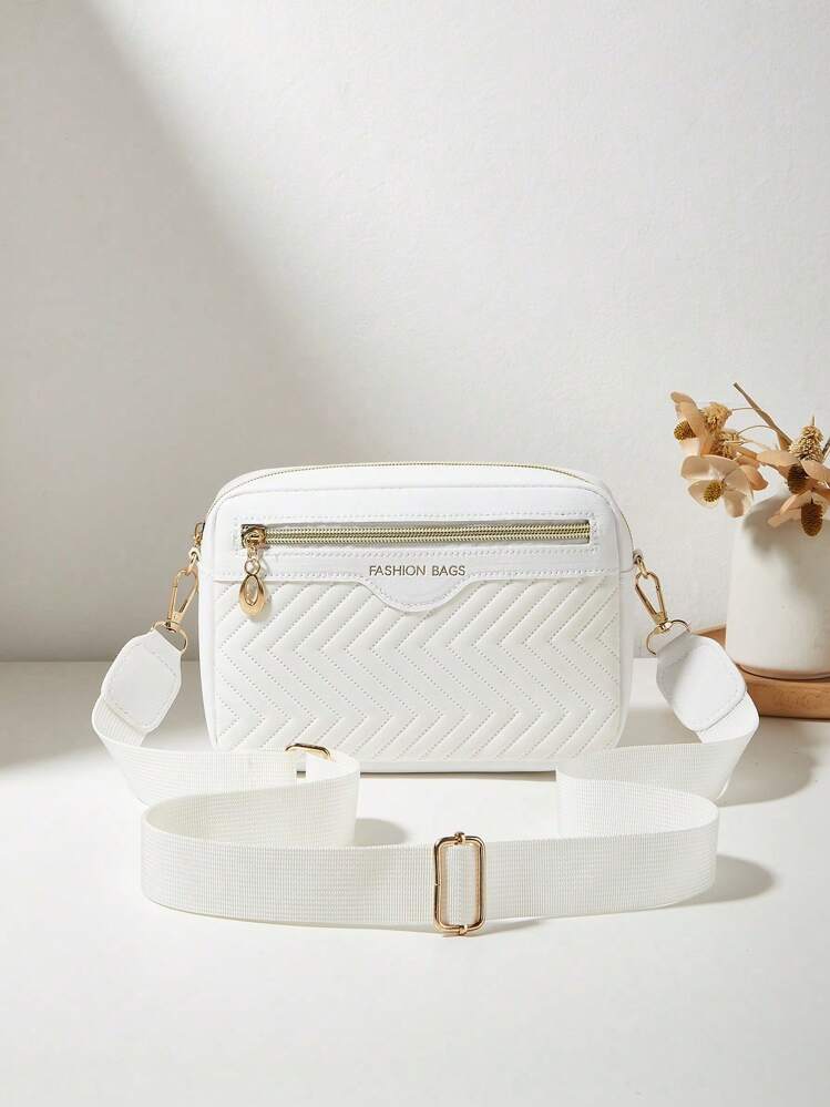 شنطة كروس خفيفة وعملية بتصميم أنثوي أنيق، تأتي بلون أبيض ناصع مع لمسات ذهبية جذابة. مصممة بنقشة مبطنة فاخرة تضيف لمسة راقية على أي إطلالة، سواء كانت كاجوال أو رسمية.